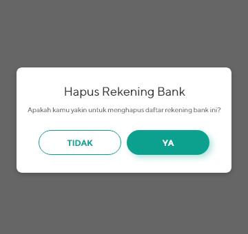 - Klik Ya, untuk konfirmasi hapus rekening bank.