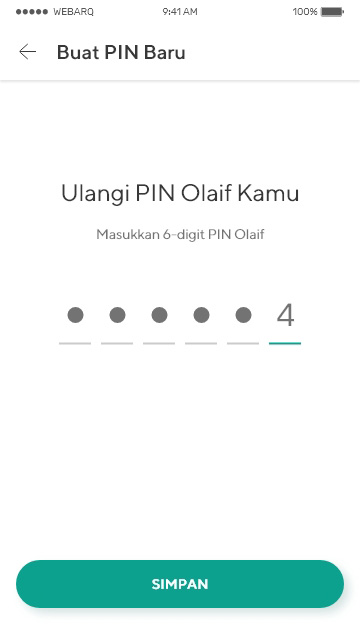 - Ulangi PIN Olaif kamu, kemudian klik Simpan.