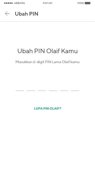 - Klik Lupa PIN Olaif, kemudian masukkan PIN baru kamu.