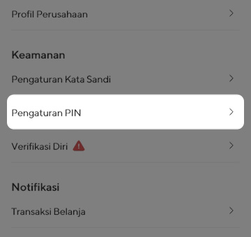 - Pilih menu Pengaturan PIN.