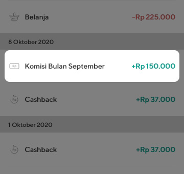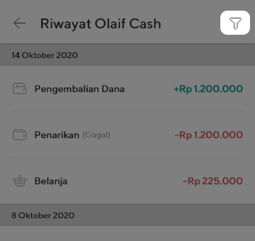 - Di halaman ini kamu dapat melihat semua riwayat transaksi Olaif Cash.
