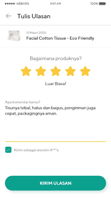 Setelah melakukan pembelian produk di Olaif, kamu bisa memberikan ulasan dengan cara sebagai berikut: